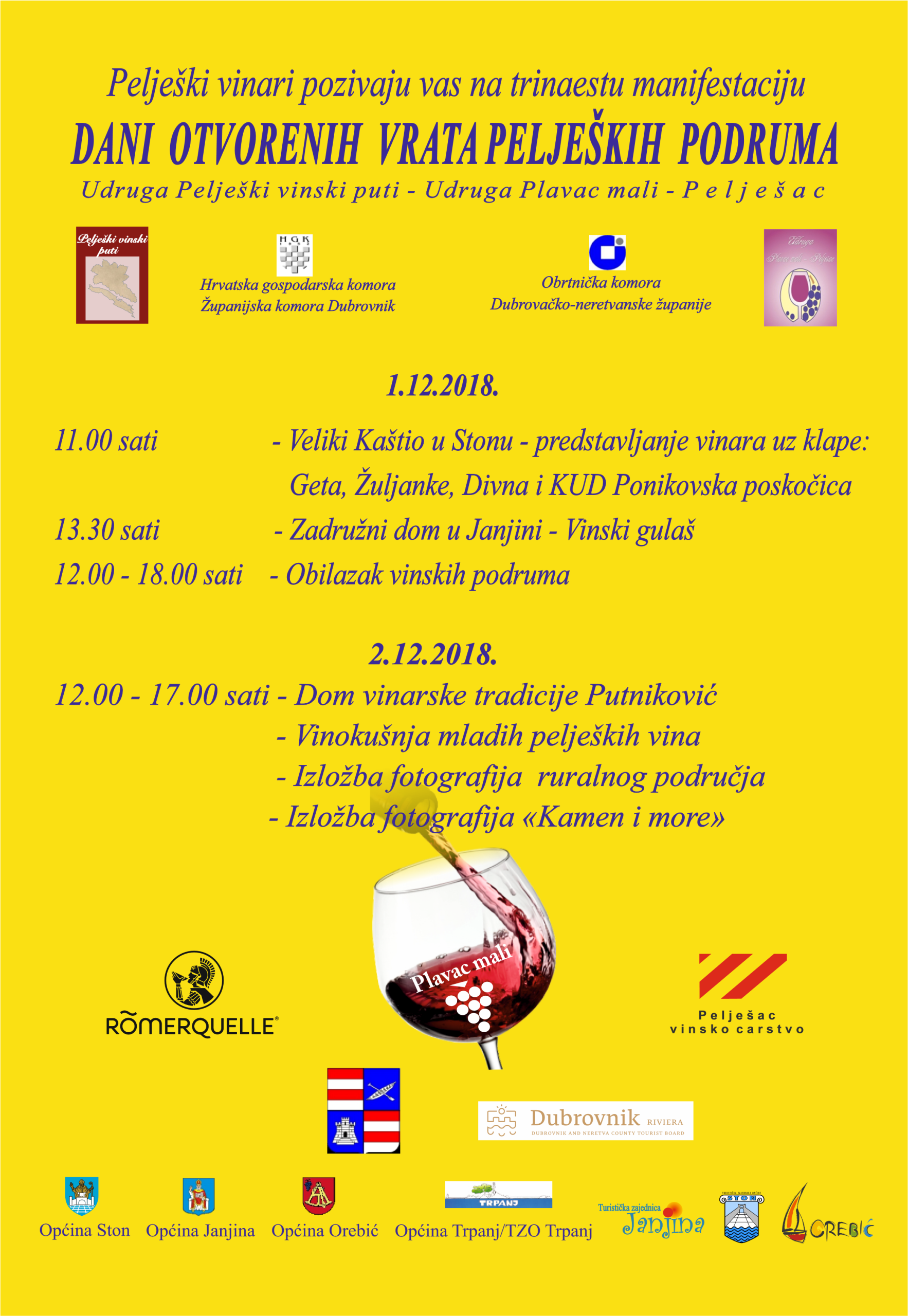 U organizaciji Udruge Plavac mali – Pelješac, Pelješki vinski puta, HGK -Županijske komore Dubrovnik, Obrtničke komore Dubrovačko-neretvanske županije pod pokriviteljstvom Dubrovačko-neretvanske županije, Turističke zajednice županije te u suorganizaciji peljeških turističkih zajednica i općina, nastavljajući iznimno uspješna dosadašnja iskustva, pelješki vinari i ove godine otvaraju vrata svojih podruma kako bi omogućili brojnim vinoljubcima kušnju mladih i […]
